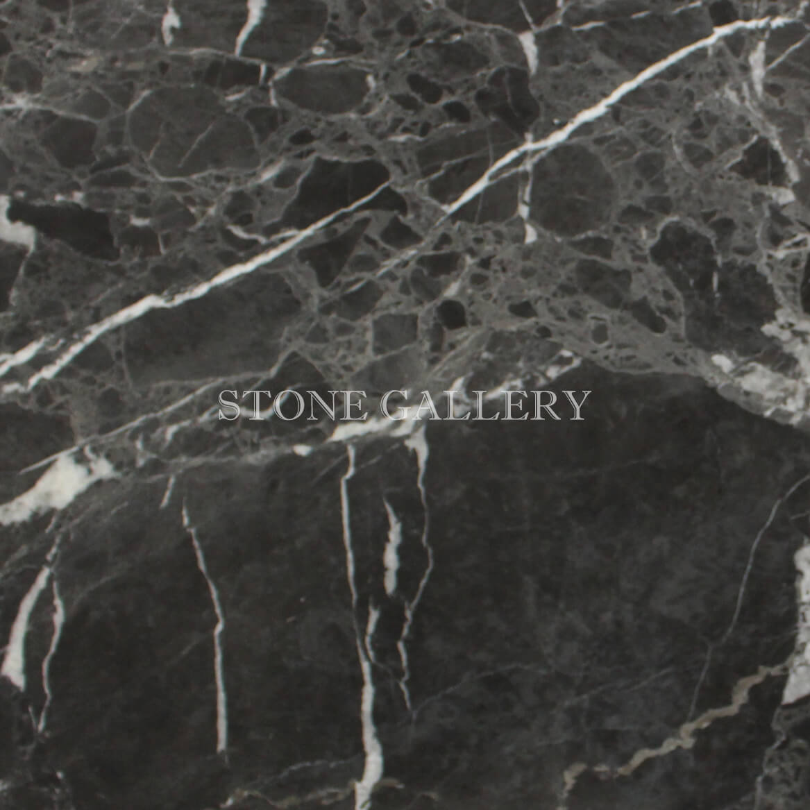 โทนสีเทาเข้ม ลวดลายเส้นแร่สีขาวเด่นชัดพาดผ่าน เหมาะสำหรับงานตกแต่งระดับไฮเอนด์ นิยมใช้ในผนัง เคาน์เตอร์ ครัว ห้องน้ำ หรือเฟอร์นิเจอร์ที่ต้องการความเรียบหรูและโมเดิร์น
