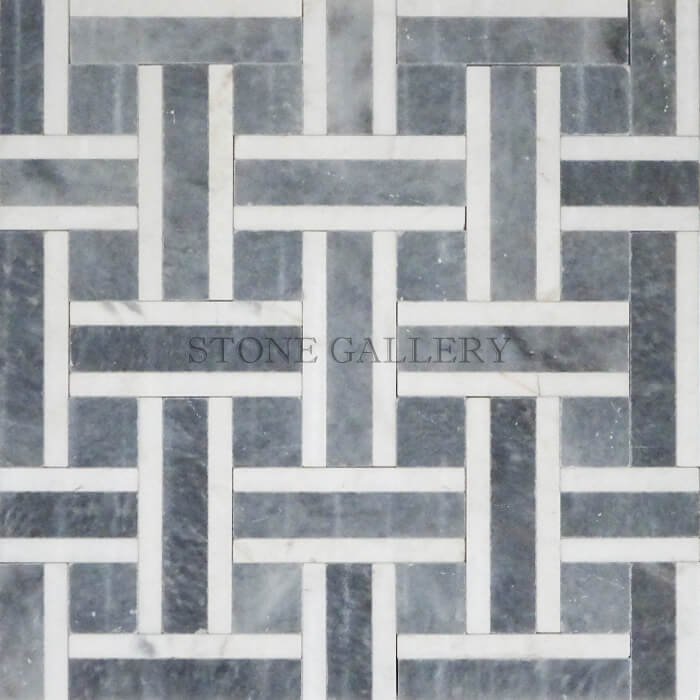 ดีไซน์การจัดเรียงแบบตะกร้าสานทำให้พื้นที่ดูหรูหราและโดดเด่นกว่าโมเสคทั่วไป โทนสีเทา-ขาว